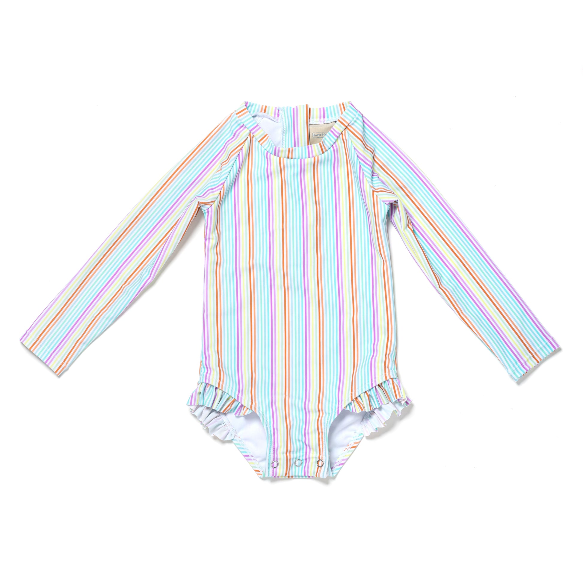 Baby and Toddler Girl Long Sleeve Rash Guard One Piece Swimsuit, Color Burst Stripe